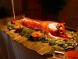 Lechon is a whole pig slow roasted over charcoal by putting a long bamboo stick in the mouth and out the back. It a is staple dish that is present in special occasions such as fiesta, weddings, baptisms, and more. It served with a liver-based sauce and eaten as a main dish.